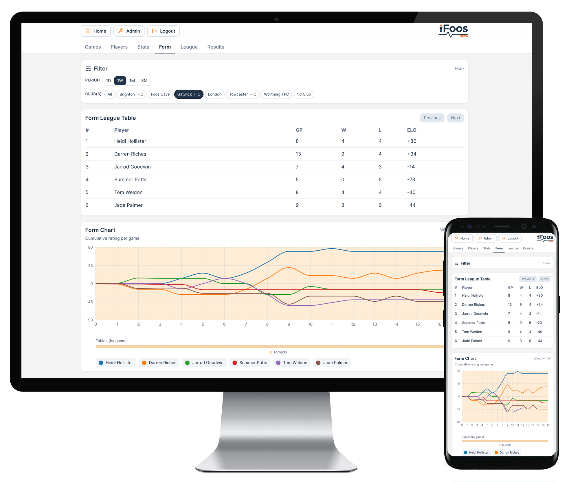 - Import your past matches and players, then start using iFoos immediately.