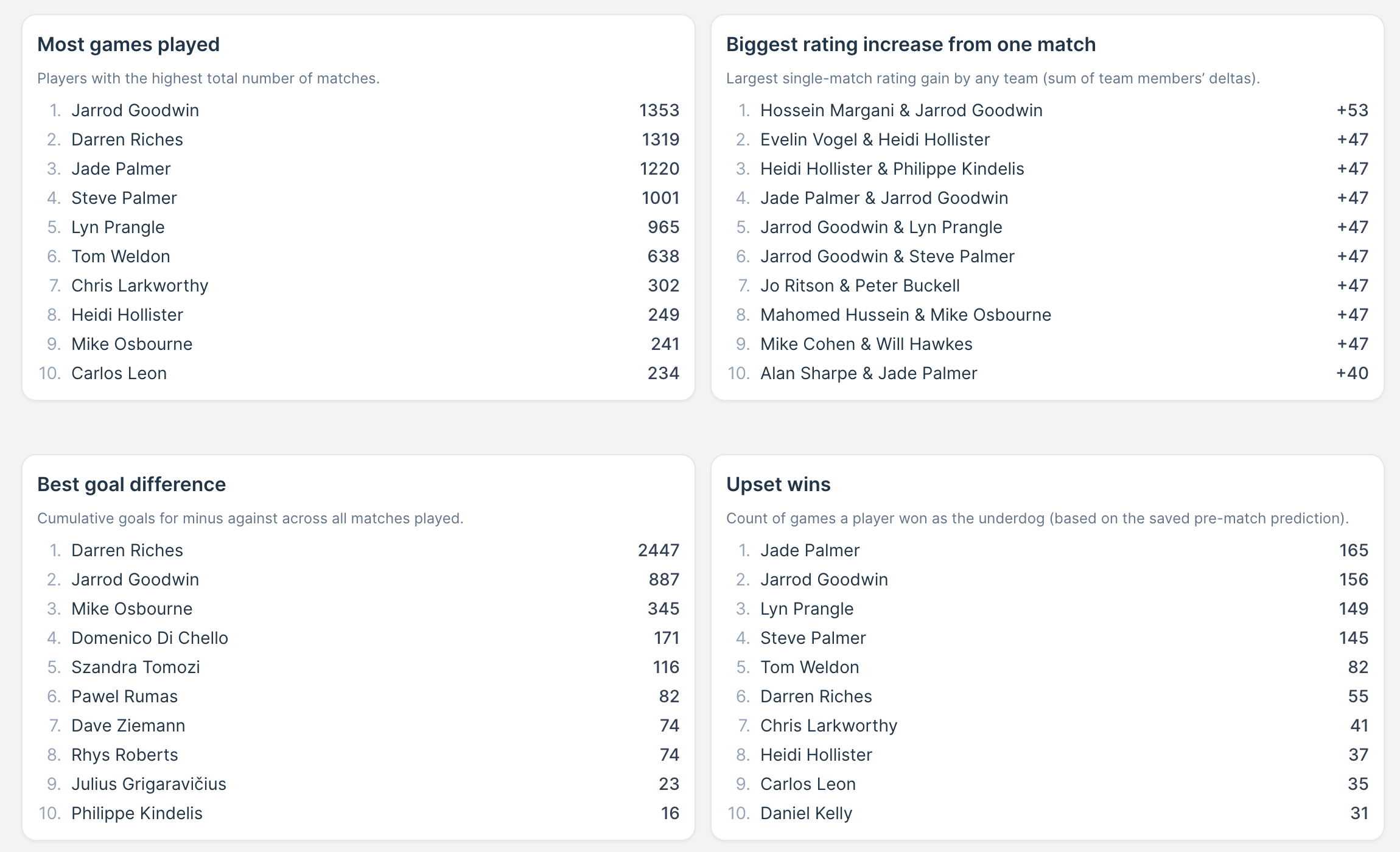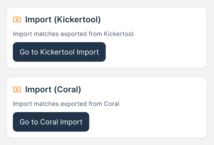 Import historical matches from Kickertool and Coral quickly, so you can launch with real data from day one.